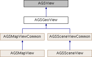 A base class for all views that can display geographic content on screen. Subclasses can display the content in either 2D (AGSMapView) or 3D (AGSSceneView). In an MVC architecture, this class and its subclasses represent the View tier. The Model tier is represented by the geographic content which could be a map (AGSMap) or scene (AGSScene).