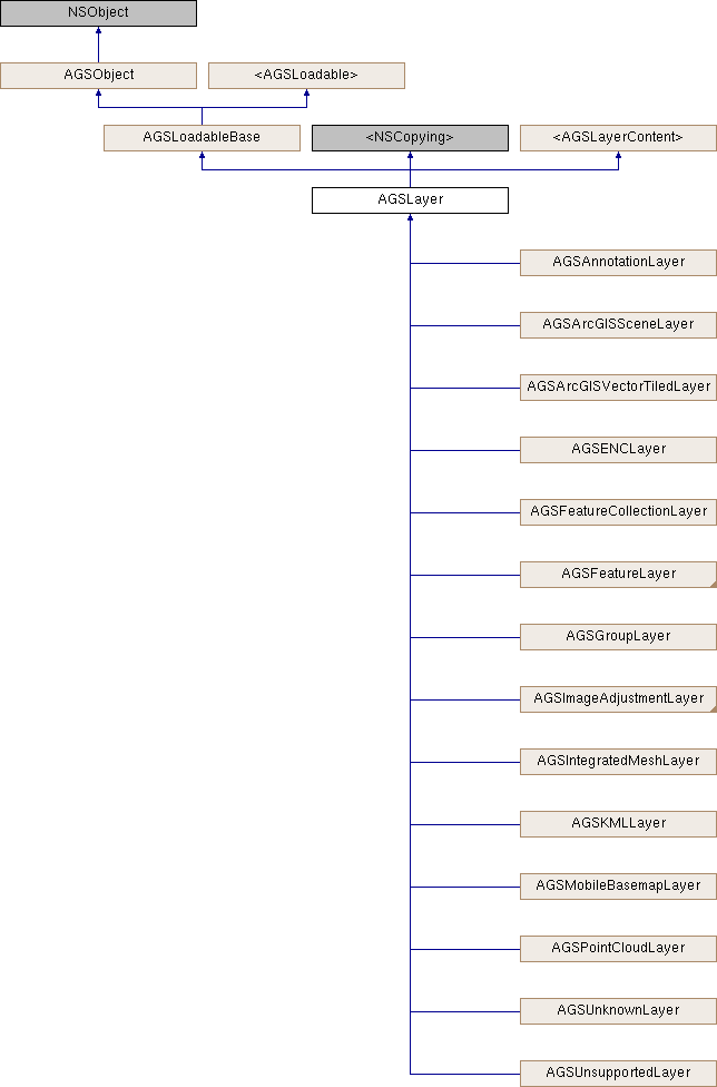 AGSLayer is the base class for all these layer types.