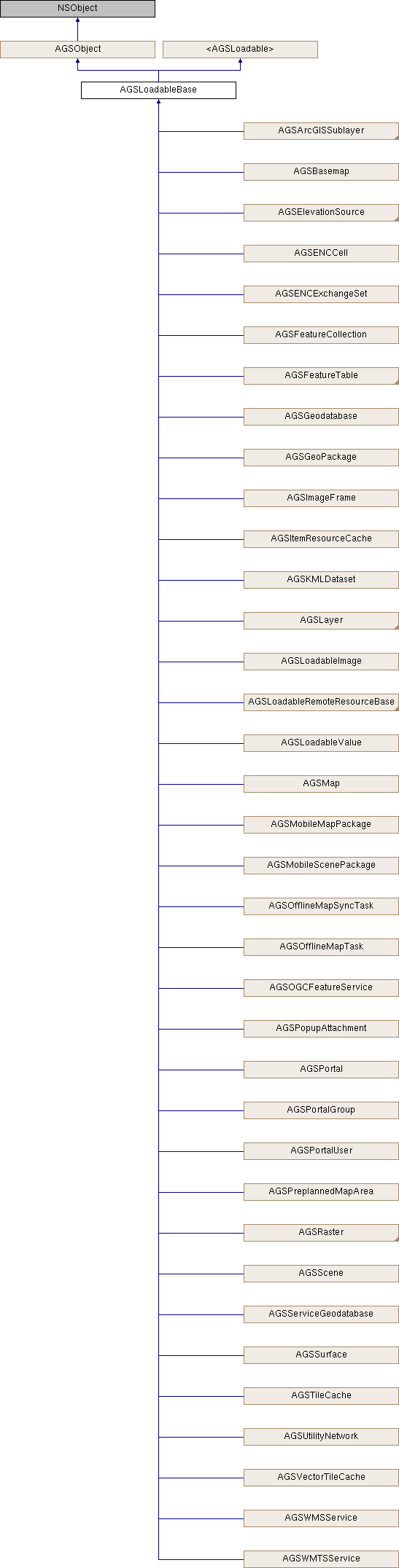 It provides some basic plumbing that make it easier to adopt the <AGSLoadable> protocol. For example, you don't have to worry about keeping references to completion blocks, loading data on background threads, invoking completion blocks, managing the load status, and so on; this base class will handle all that.