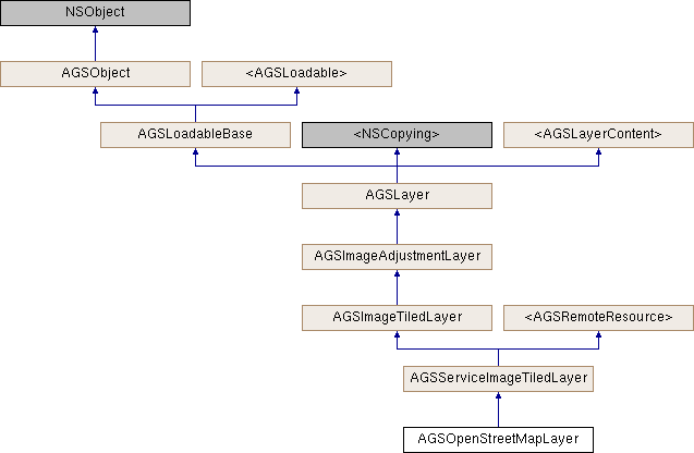 An AGSOpenStreetMapLayer is a preconfigured AGSWebTiledLayer. Unlike a web tiled layer, it comes with predefined attribution and does not support identify, query, selection, or time. Performance of OSM layers is similar to web tiled layer performance. Raster tiles are read from the service as needed by the map.