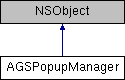 Instances of this class represent a popup manager that contains the necessary business logic for displaying and editing popup information for geo-elements. This class is useful, for instance, if you want to create your own View Controller for displaying AGSPopup instead of using AGSPopupsViewController.