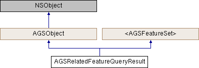 Instances of this class represent results of relationship based queries that return features. This class has methods that can be used to iterate over the collection of features. The AGSFeatureEnumerator class conforms to NSFastEnumeration which permits the collection to be enumerated conveniently using a for-in loop. For example -