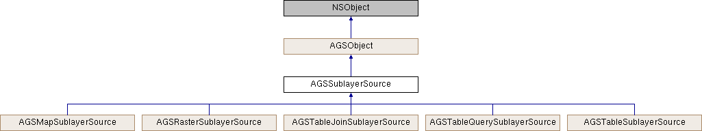 Map Sublayer: a sublayer in an ArcGIS map service. See AGSMapSublayerSource Dynamic table: data from a table data source. See AGSTableSublayerSource Dynamic query table: data from a queryTable data source. See AGSTableQuerySublayerSource Dynamic raster: data from a raster data source. See AGSRasterSublayerSource Dynamic join table: data from a joinTable data source. See AGSTableJoinSublayerSource